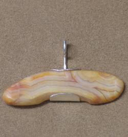 Lace agate curved stone set in Sterling Silver. Just under 2" long.